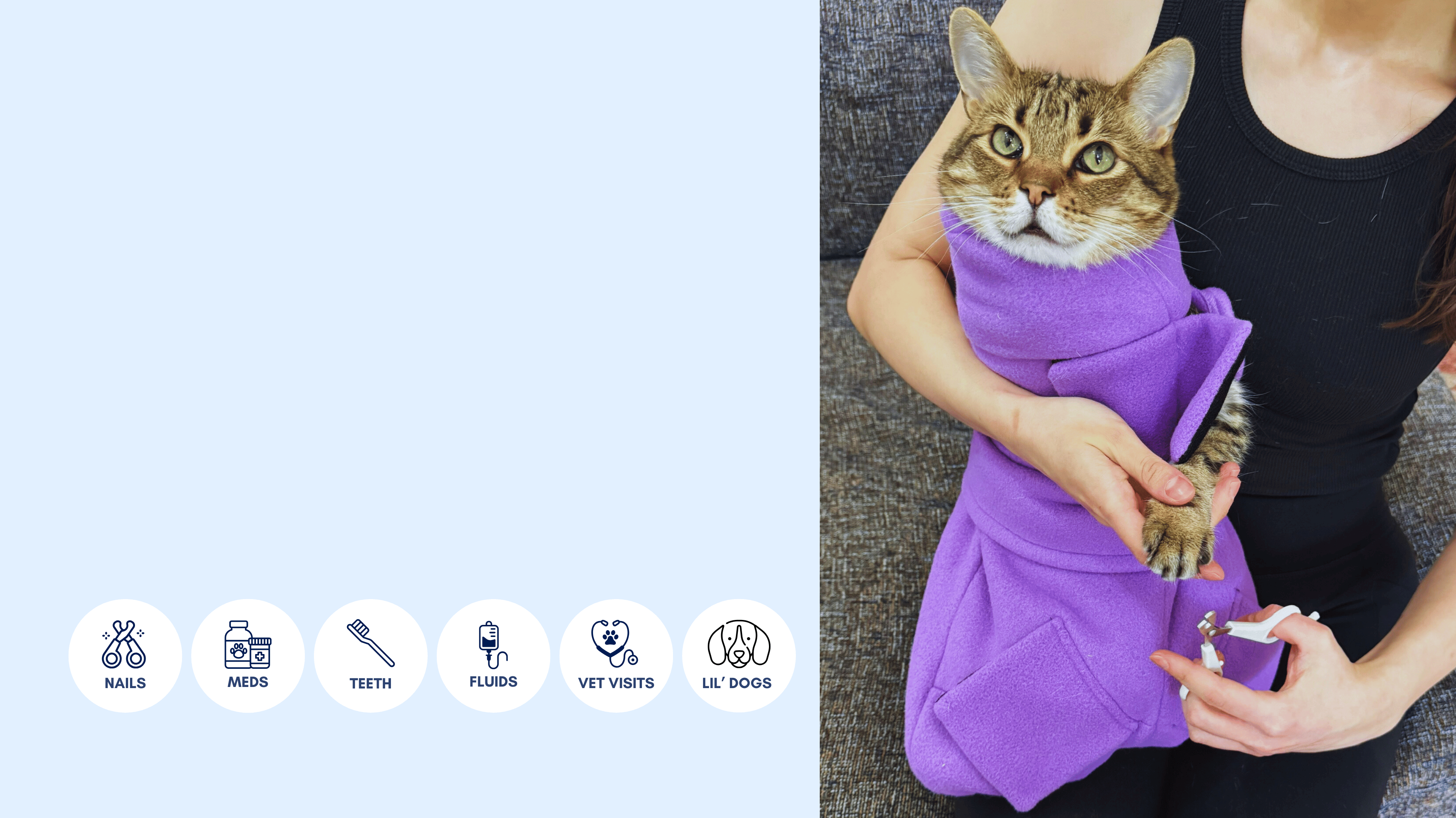Our Pro Wrap was designed by a vet to allow for a full vet exam while your cat is wrapped up, so they can stay calm and comfortable through the whole visit. We do not want the stress of a vet visit to be a barrier to getting the care your pet needs.